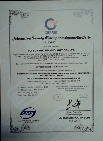 2014年3~4月,星空电竞科技顺利通过了国际标准及权威的ISO27001信息安全认证体系和ISO20000信息技术服务管理体系,取得了广州赛宝认证中心颁发的ISO/IEC 27001:2005信息安全管理体系认证证书和ISO/IEC 20000-1:2011信息技术服务管理体系认证证书。